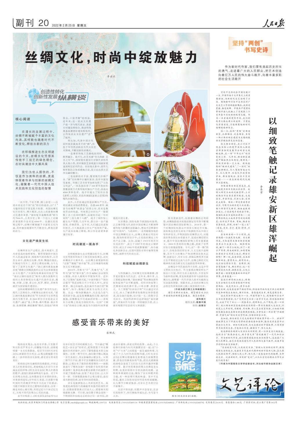 2月25日,《人民日报》(文艺版)“创造性转化 创新性发展纵横谈”专栏刊发我校杂志社社长、《丝绸》总编辑李启正老师撰写的文章《丝绸文化,时尚中绽放魅力》。